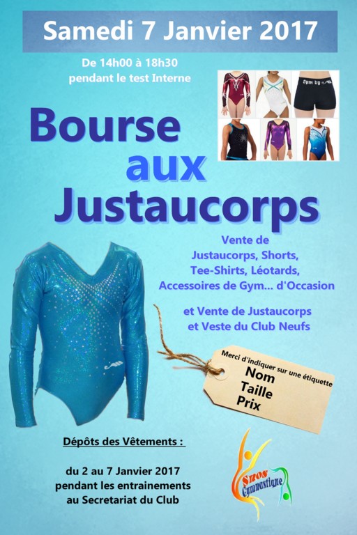 Le SNOS Gymnastique organisera sa « bourse aux justaucorps » le jour du Test Interne, le samedi 7 Janvier 2016 à partir de 14h00.